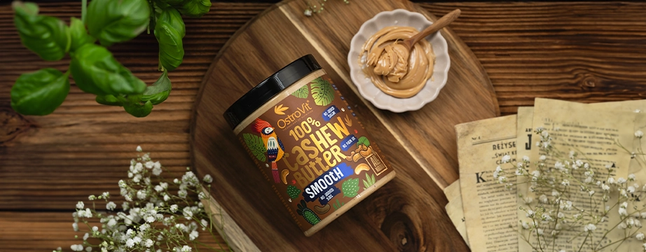 OstroVit 100% kešu maslo je vynikajúci a jedinečný produkt, vytvorený pre najnáročnejších gurmánov, ale aj pre ľudí, ktorí dbajú o štíhlu postavu, športujú a obmedzujú škodlivý nadbytok soli alebo cukru v strave. Hlboká, plná chuť kešu orechov sa dokonale hodí ako sladká a slaná príloha. Je to skutočná bomba cenných mastných kyselín, bielkovín a minerálov. Hĺbka chuti, 100% spokojnosť a záruka najvyššej kvality - OstroVit 100% kešu maslo.