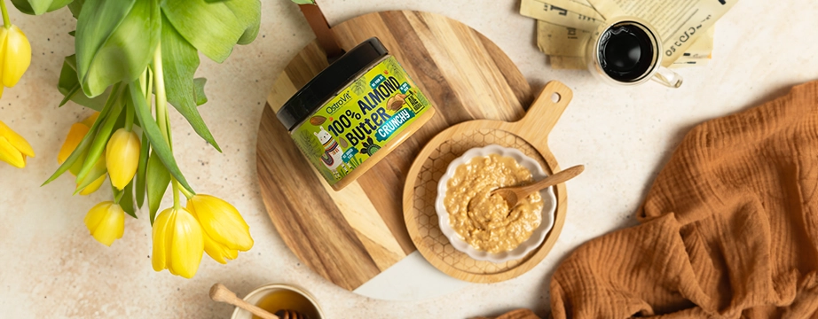 OstroVit 100% mandľový krém je výrobok s nejednotnou konzistenciou, ktorý obsahuje kúsky chrumkavých mandlí a je skvelý do sladkých aj slaných jedál. Je to jedinečný doplnok stravy pre športovcov a ľudí, ktorí túžia po štíhlej postave, ktorý neobsahuje žiadne zbytočné zložky a je bez pridaného cukru a soli.