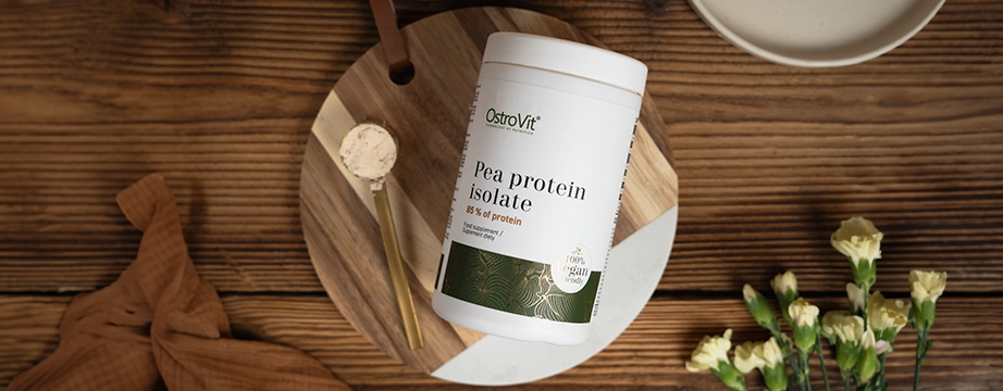 Hrachový proteínový izolát použitý v prípravku OstroVit je zlúčenina, ktorá vyniká bohatým aminokyselinovým profilom, čo má pozitívny vplyv na kvalitu výživového doplnku a robí z výrobku kompletný produkt, ktorý môžu používať aj ľudia, ktorí sa stravujú rastlinnou stravou.